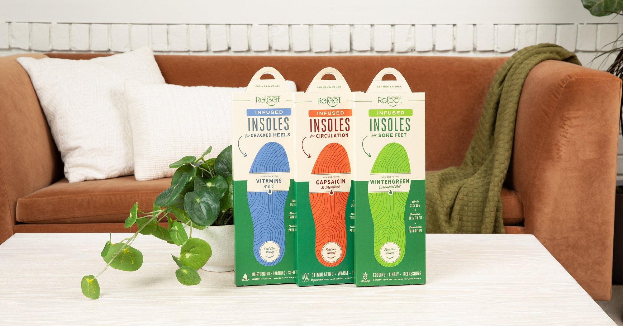 Releef insoles are infused with essential oils and other naturally derived ingredients, delivering beneficial effects with every step.